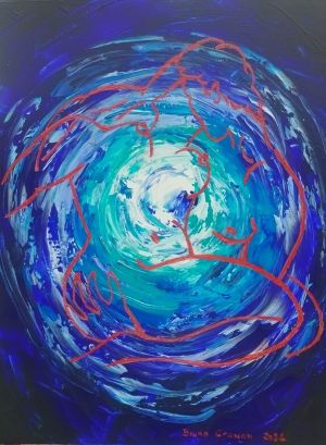 Peinture acrylique sur toile 80 x 60 cm : " L'amour dans l'oeil du cyclone...l'eau , le vent et la lumière ...l'amour, l'univers et le temps...Love is blue." (Mars 2024).