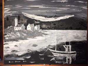 Peinture au couteau sur toile 40 X 50 cm : « Gros temps sur la côte bretonne. » ( mars 2022).