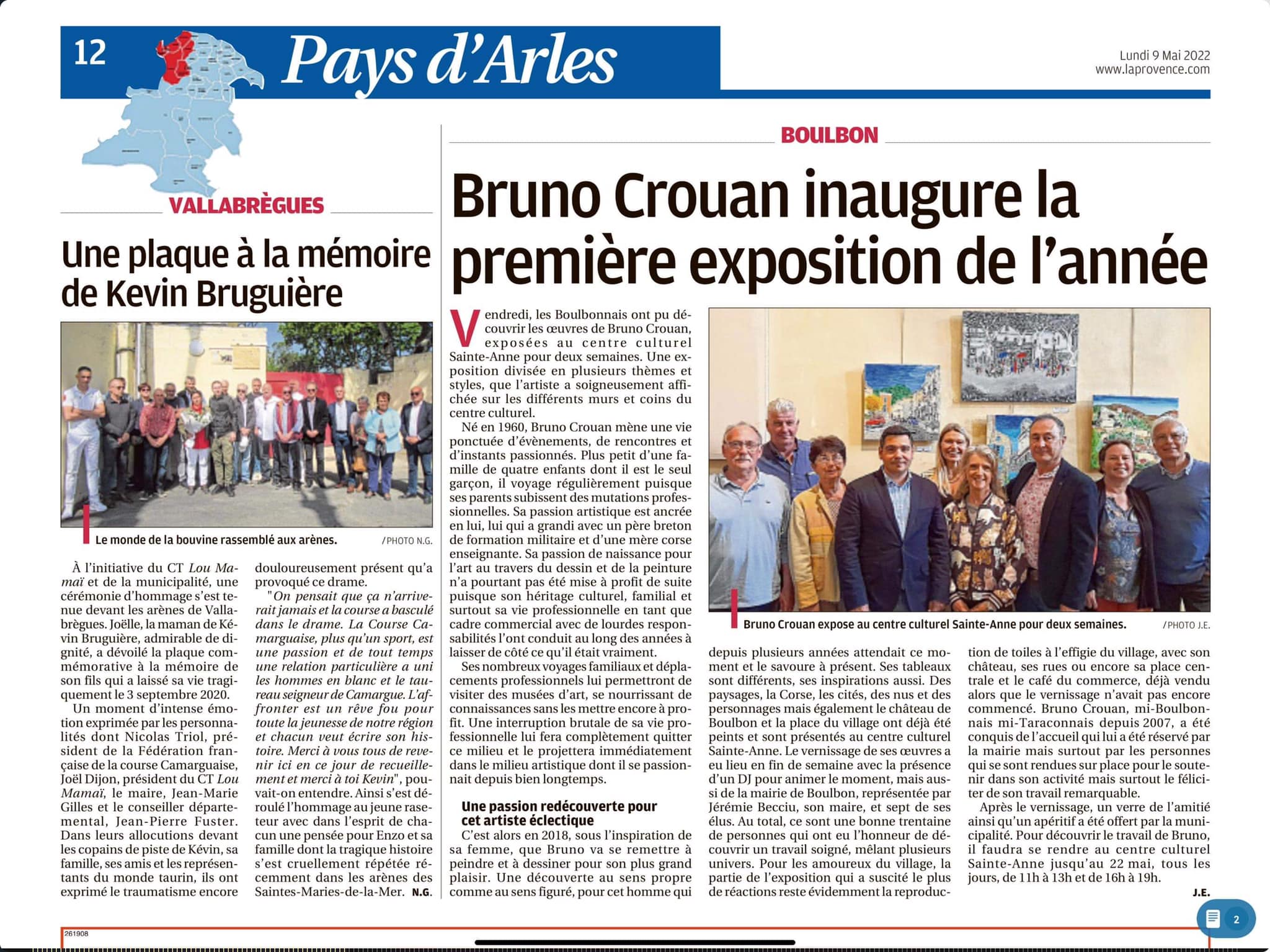 Publication dans le journal La Provence ce lundi 9 mai # Centre Culturel Sainte Anne à Boulbon Big Vernissage exposition du 6 au 22 mai soutien et participation de la Mairie Boulbon- 13150