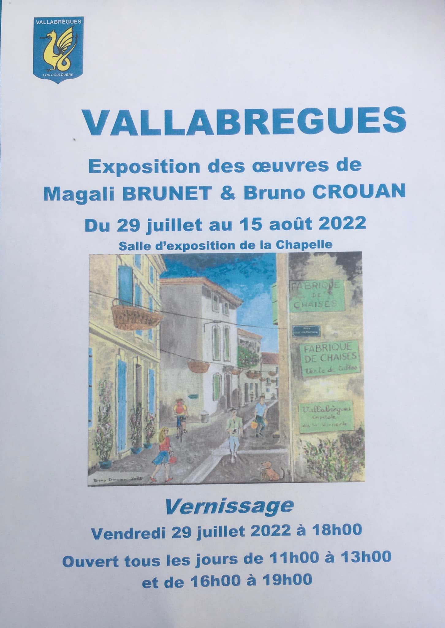 Save the date # vendredi 29 juillet 2022 à 18h # Big Vernissage de l’exposition de Magali BRUNET & Bruno CROUAN # Salle d’exposition de La Chapelle du 29 juillet au 15 août # soutien et participation de la Mairie # Village de Vallabrègues, capitale de la Vannerie - 30300 #