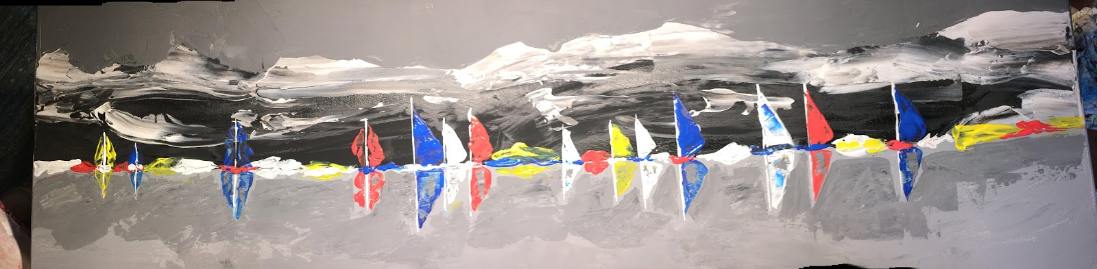 Peinture acrylique au couteau sur toile 120 x 40 cm : « Régate en Islande. » ( Mai 2022).
