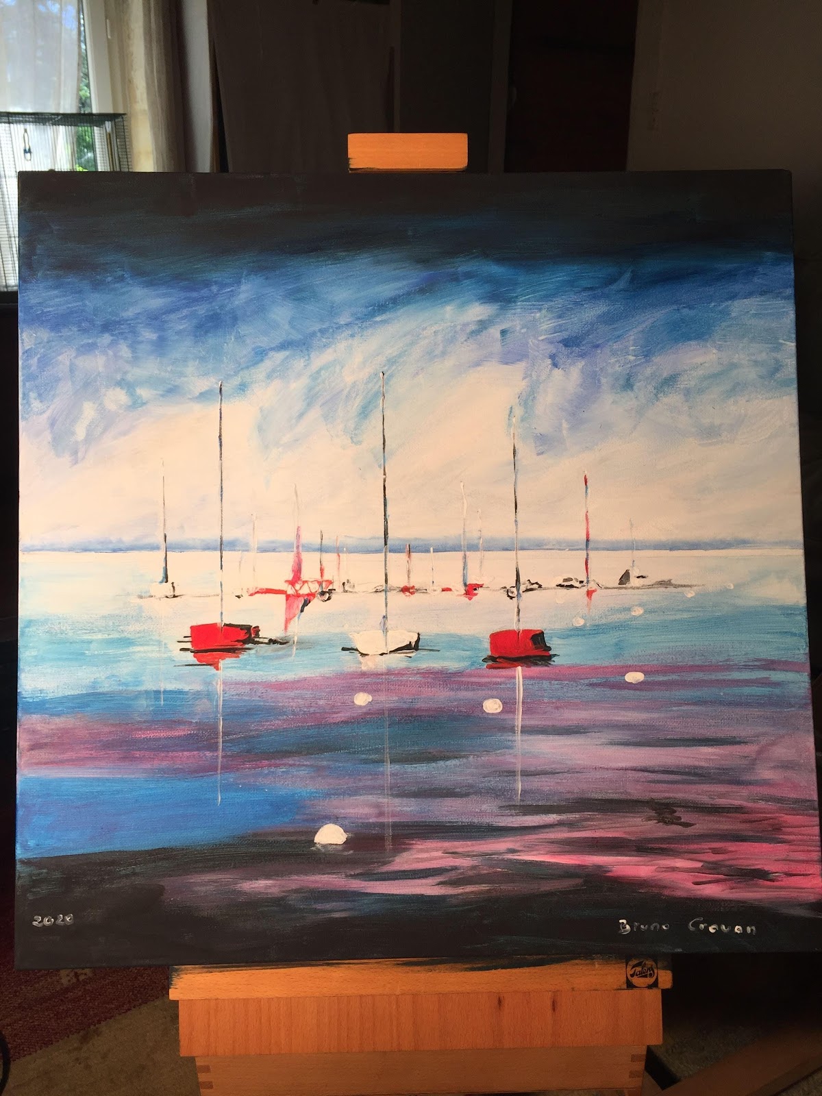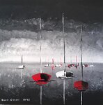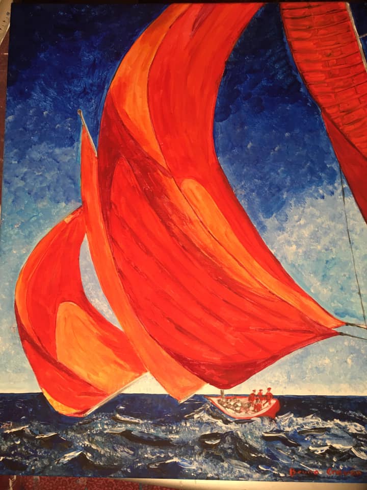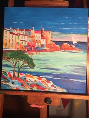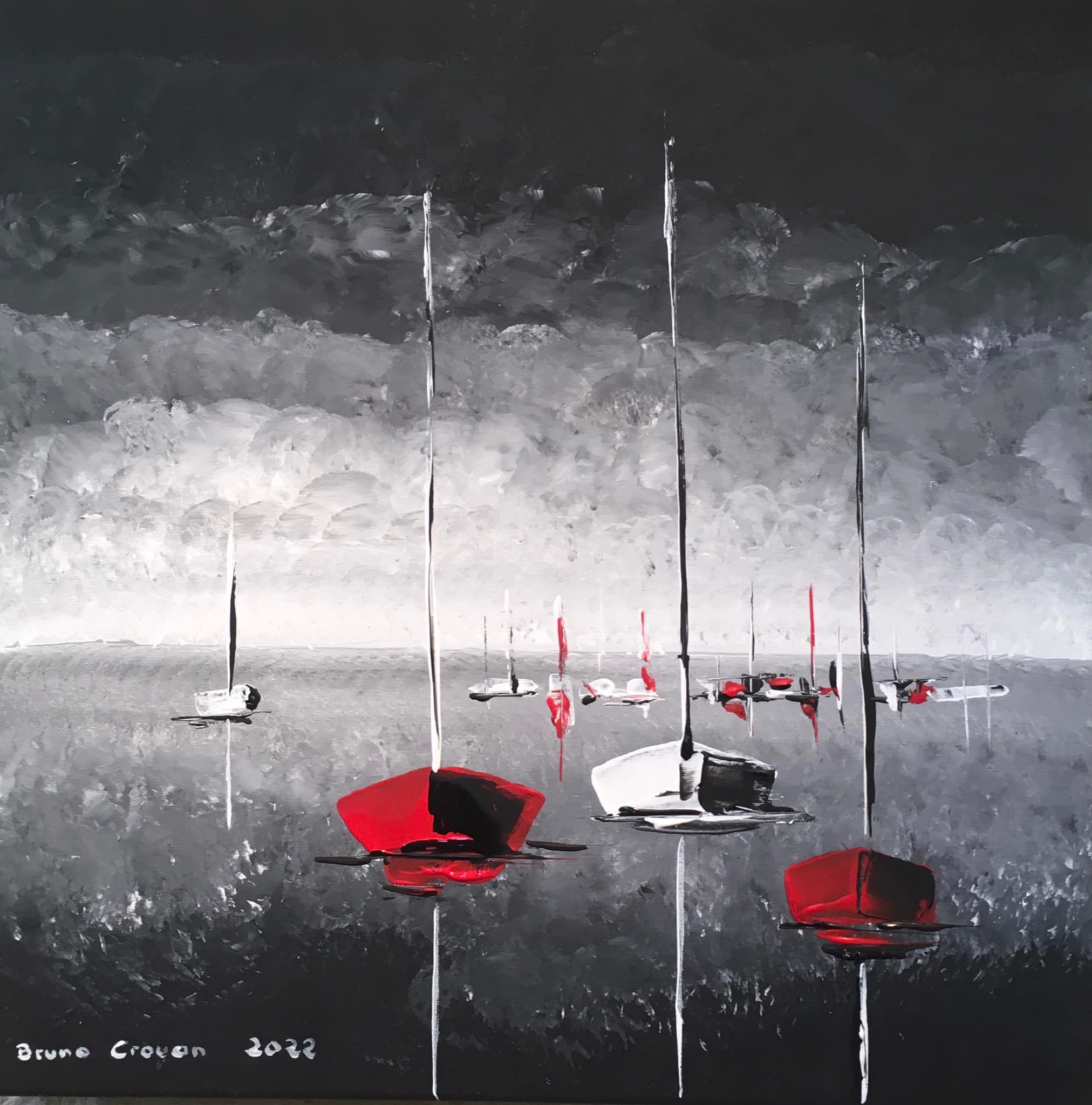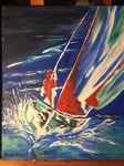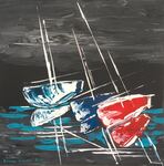 Peinture acrylique sur toile de 40 x 50 cm ; "Les voiles rouges de Saint-Tropez." (octobre 2021)