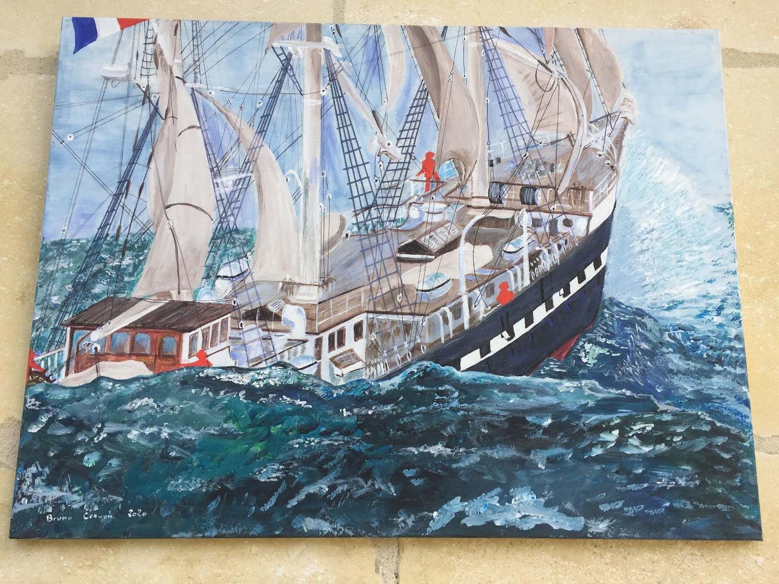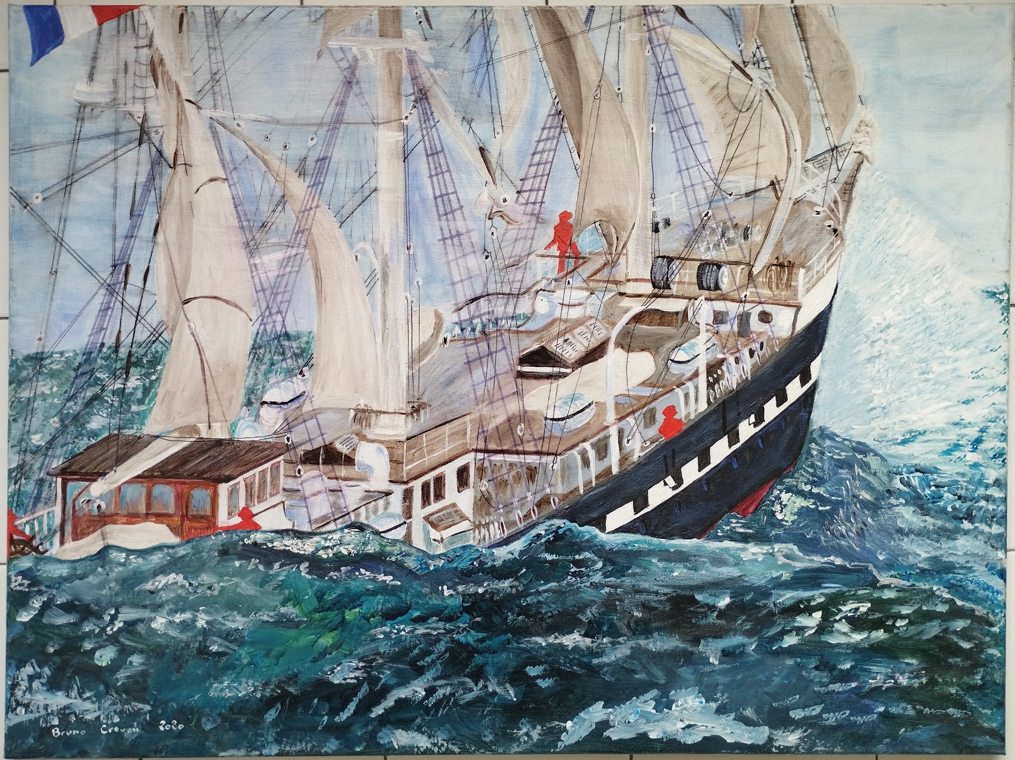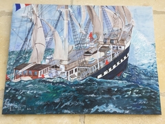Acrylique sur toile 60X80 cm : " Le Belem , 3 mâts barque de mes ancêtres, famille CROUAN, 1896." (2020)