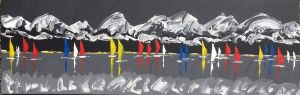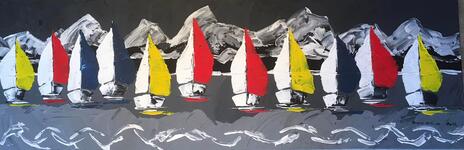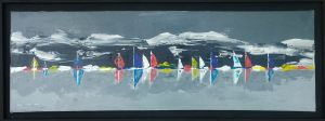 Peinture au couteau sur toile 120 x 40 cm : « Régate sur le lac Léman dominé par les Alpes. » (Mai 2022)