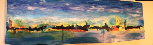 Peinture acrylique sur toile 120 X 40 cm : « Marina abandonnée lors du 1er confinement 2020. »