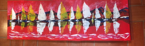 Peinture acrylique au couteau sur toile 120 x 40 cm : « Régate en Mer Rouge… » ( novembre 2021).