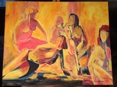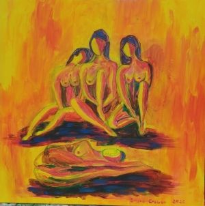 Peinture acrylique sur toile 50 x 50 cm : "Au choeur de jeunes femmes, à l'égal des Grâces..." (Janvier 2024).
