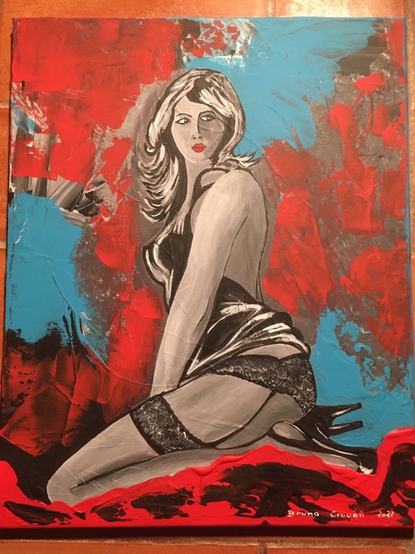 Acrylique sur toile 40X50 : "la mariée aus lèvres rouges... Mariage Anne & Bruno le 7 juillet 2018."